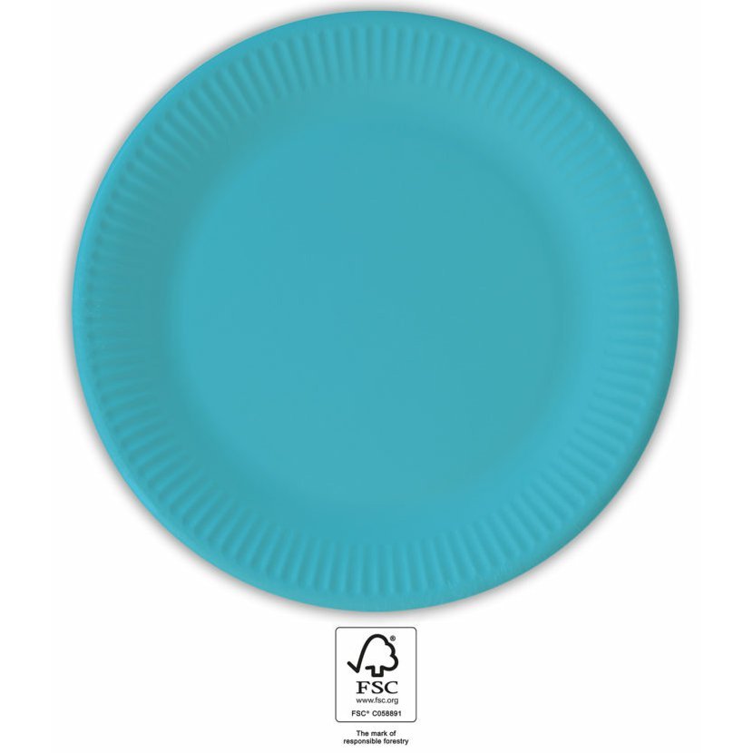 EKO papírové talířky TYRKYSOVÉ, 23 cm, 8 ks