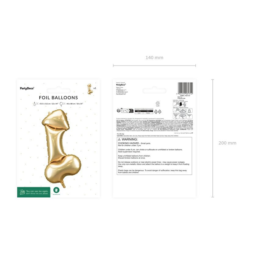 Fóliový balónek má velikost 46 x 88 cm a je určený pro nafukování vzduchem i heliem. Má speciální samouzavíratelný ventil, takže se nemusíte bát, že Vám bude vzduch či helium při nafukování z balónku unikat. K uzavření ventilu tak nemusíte použít žádnou šňůrku. Při nafukování balónku vzduchem můžete použít ruční pumpičku či profi elektrickou pumpičku, která obsahuje speciální ventil na fóliové balónky, nebo obyčejné brčko, které opatrně vsunete do nafukovacího ventilu a foukáte. Balónek nafouknutý vzduchem nelétá! Pokud budete chtít, aby Vám balónek létal, doporučujeme zakoupit heliovou bombu na balónky nebo Vám balónek po předchozí domluvě rádi nafoukneme přímo na naší provozovně. Výhodou fóliového balónku je, že když se Vám po čase začne vyfukovat a ztrácet tvar, můžete ho opět dofouknout. Pumpičky a helium můžete dokoupit přímo u nás v e-shopu.