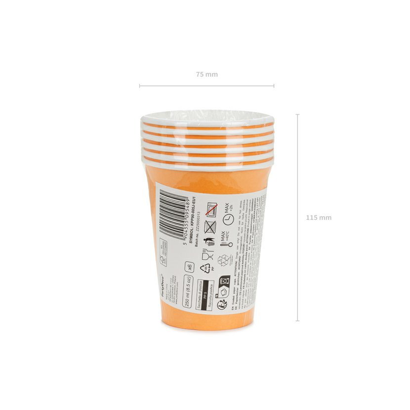Kelímky papírové ORANŽOVÉ, 250 ml, 6 ks - Obr.1