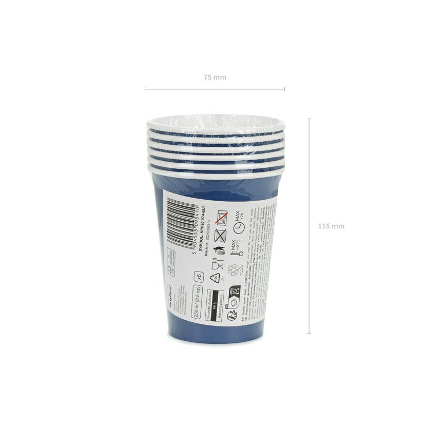 Kelímky papírové TMAVĚ MODRÉ, 250 ml, 6 ks