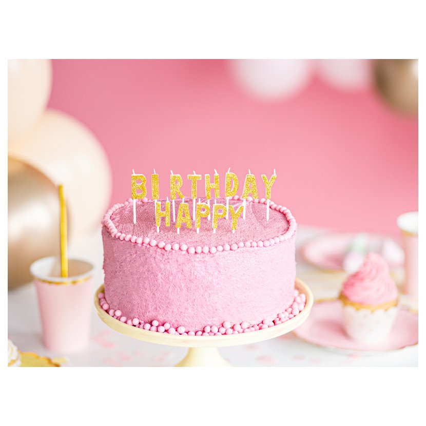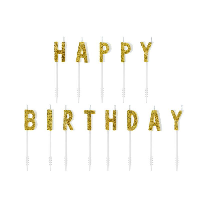 Narozeninové svíčky glitrované "Happy Birthday" ZLATÉ