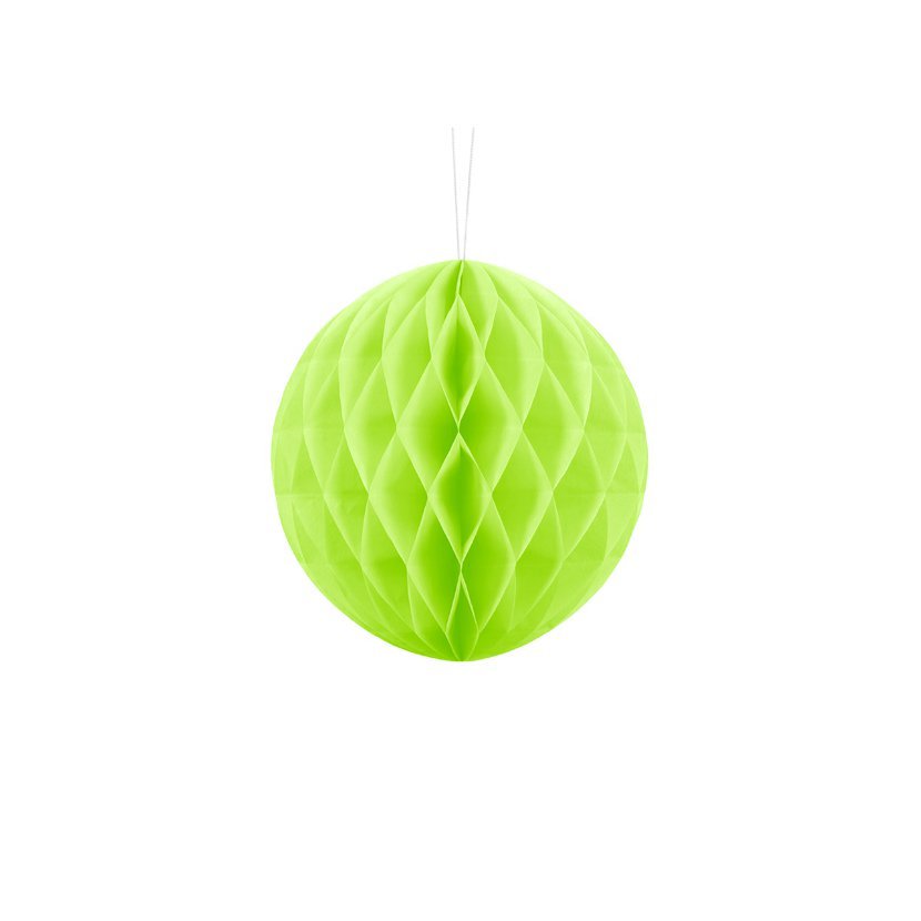 Papírová dekorační koule "Honeycomb" JABLÍČKOVÁ, průměr 20 cm Stylová papírová koule "Honeycomb" v jablíčkové barvě je ideální dekorací pro narozeniny, svatby, dětské oslavy i sezónní párty. Díky bílému provázku, který je součástí výrobku, se dekorace snadno zavěsí a vytvoří působivou atmosféru. Průměr dekorace je 20 cm.