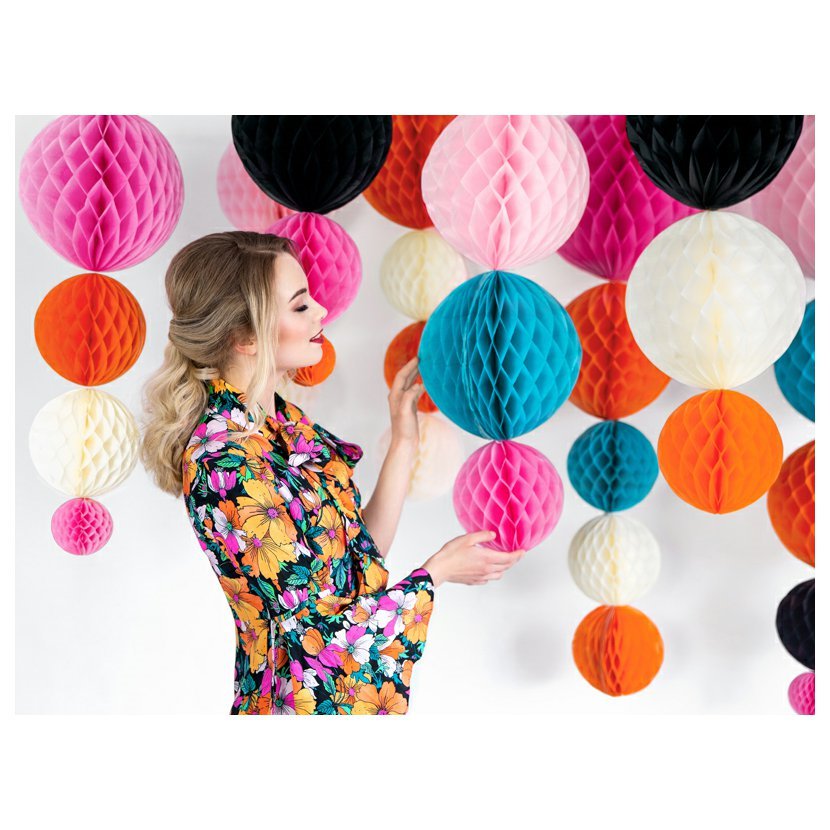 Papírová dekorační koule "Honeycomb" KRÉMOVÁ, průměr 20 cm Stylová papírová koule "Honeycomb" v krémové barvě je ideální dekorací pro narozeniny, svatby, dětské oslavy i sezónní párty. Díky bílému provázku, který je součástí výrobku, se dekorace snadno zavěsí a vytvoří působivou atmosféru. Průměr dekorace je 20 cm.