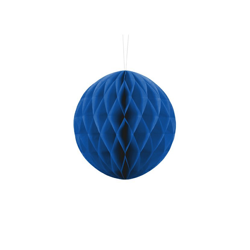 Papírová dekorační koule "Honeycomb" MODRÁ, průměr 20 cm Stylová papírová koule "Honeycomb" v sytě modré barvě je ideální dekorací pro narozeniny, svatby, dětské oslavy i sezónní párty. Díky bílému provázku, který je součástí výrobku, se dekorace snadno zavěsí a vytvoří působivou atmosféru. Průměr dekorace je 20 cm.