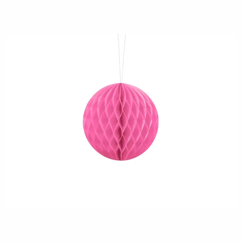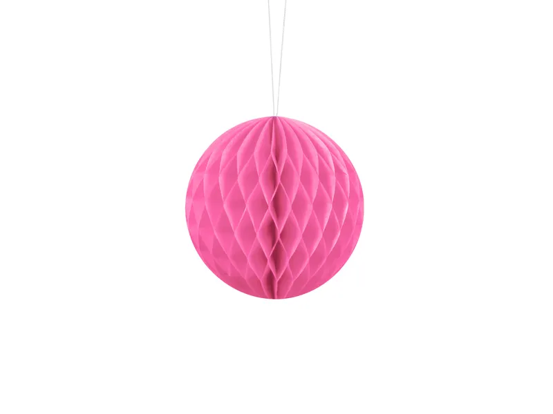 Papírová dekorační koule "Honeycomb" RŮŽOVÁ, průměr 10 cm Stylová papírová koule "Honeycomb" v sytě růžové barvě je ideální dekorací pro narozeniny, svatby, dětské oslavy i sezónní párty. Díky bílému provázku, který je součástí výrobku, se dekorace snadno zavěsí a vytvoří působivou atmosféru. Průměr dekorace je 10 cm.
