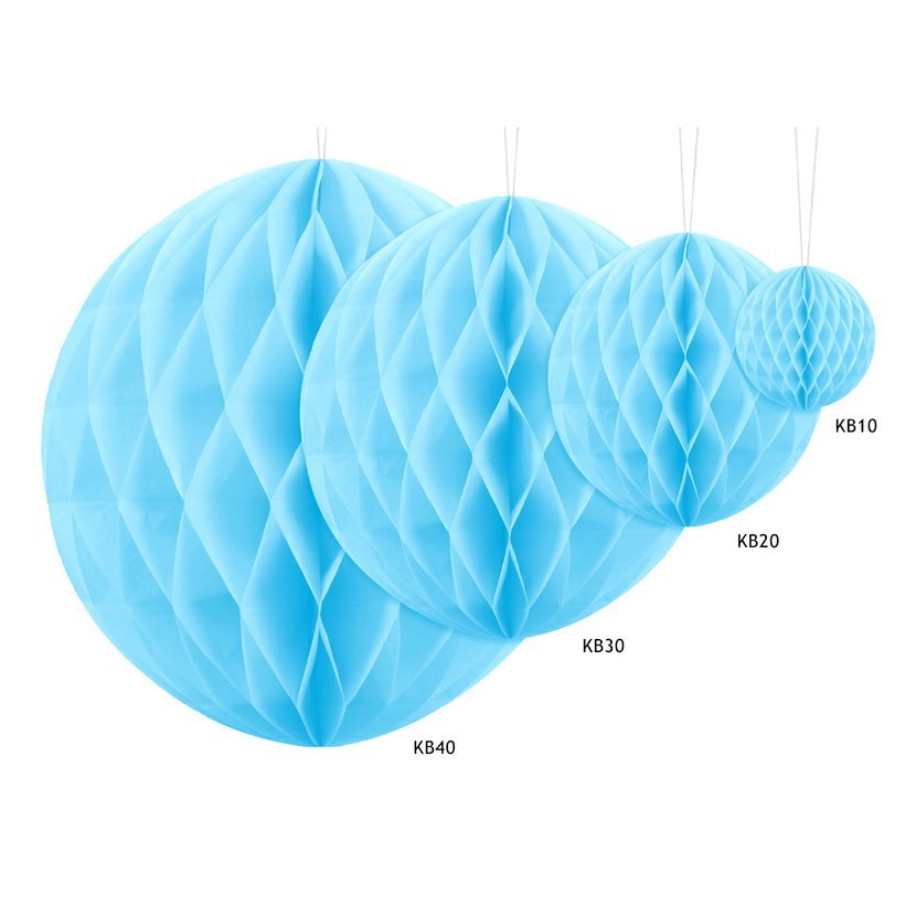 Papírová dekorační koule "Honeycomb" SVĚTLE MODRÁ, průměr 20 cm