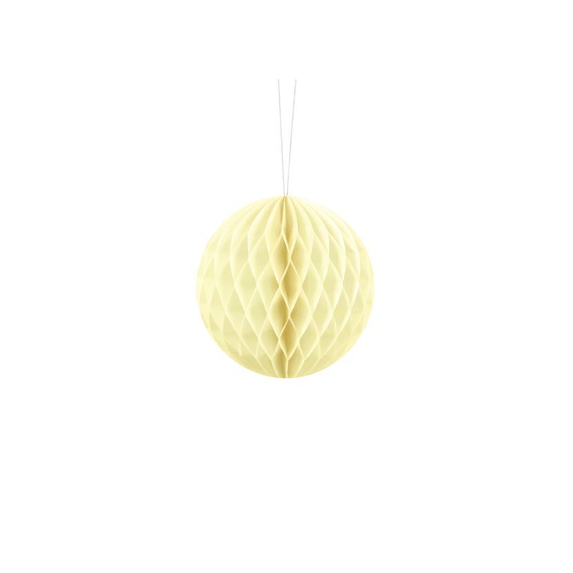 Papírová dekorační koule "Honeycomb" SVĚTLE ŽLUTÁ, průměr 10 cm Stylová papírová koule "Honeycomb" ve světle žluté barvě je ideální dekorací pro narozeniny, svatby, dětské oslavy i sezónní párty. Díky bílému provázku, který je součástí výrobku, se dekorace snadno zavěsí a vytvoří působivou atmosféru. Průměr dekorace je 10 cm.