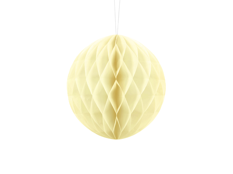 Papírová dekorační koule "Honeycomb" SVĚTLE ŽLUTÁ, průměr 20 cm Stylová papírová koule "Honeycomb" ve světle žluté barvě je ideální dekorací pro narozeniny, svatby, dětské oslavy i sezónní párty. Díky bílému provázku, který je součástí výrobku, se dekorace snadno zavěsí a vytvoří působivou atmosféru. Průměr dekorace je 20 cm.