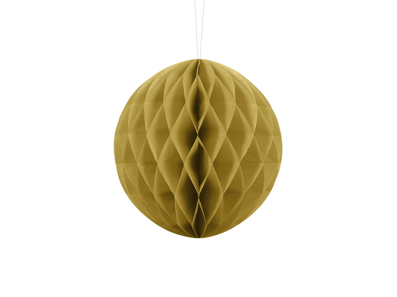 Papírová dekorační koule "Honeycomb" ZLATÁ, průměr 20 cm Stylová papírová koule "Honeycomb" ve zlaté barvě je ideální dekorací pro narozeniny, svatby, dětské oslavy i sezónní párty. Díky bílému provázku, který je součástí výrobku, se dekorace snadno zavěsí a vytvoří působivou atmosféru. Průměr dekorace je 20 cm.