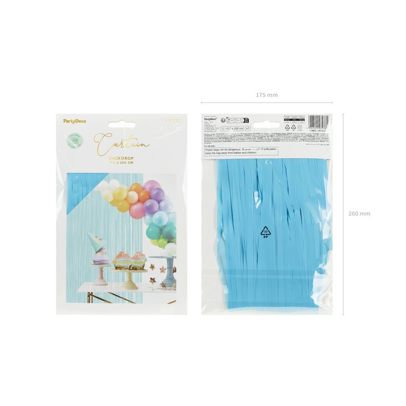 Proměňte každou oslavu v nezapomenutelný zážitek s tímto úžasným třásňovým závěsem v nádherné pastelově modré barvě! Tento stylový dekorační závěs o rozměrech 100 x 200 cm je vyroben z kvalitního fóliového materiálu, který vytvoří dokonalé slavnostní prostředí pro vaše nejdůležitější okamžiky.