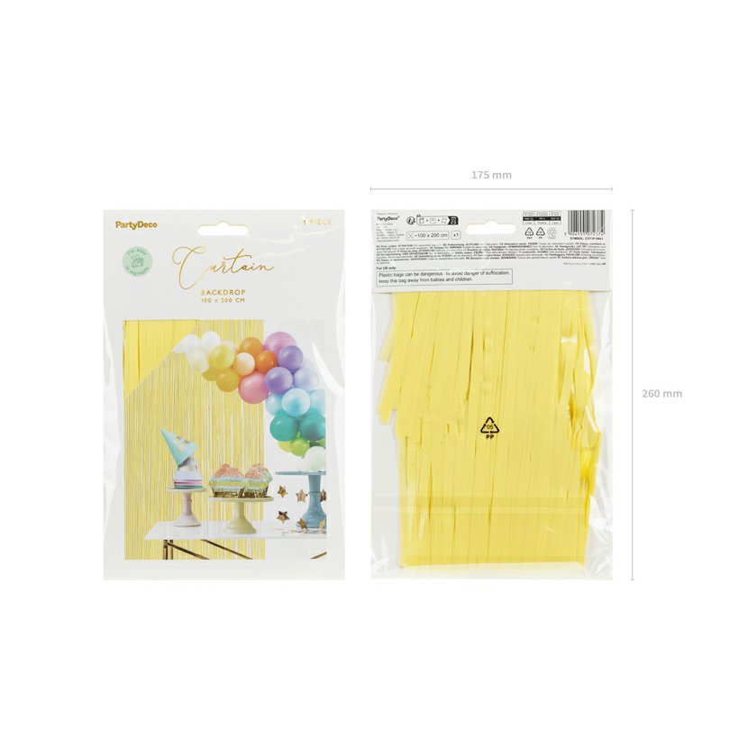 Proměňte každou oslavu v nezapomenutelný zážitek s tímto úžasným třásňovým závěsem v nádherné pastelově žluté barvě! Tento stylový dekorační závěs o rozměrech 100 x 200 cm je vyroben z kvalitního fóliového materiálu, který vytvoří dokonalé slavnostní prostředí pro vaše nejdůležitější okamžiky.
