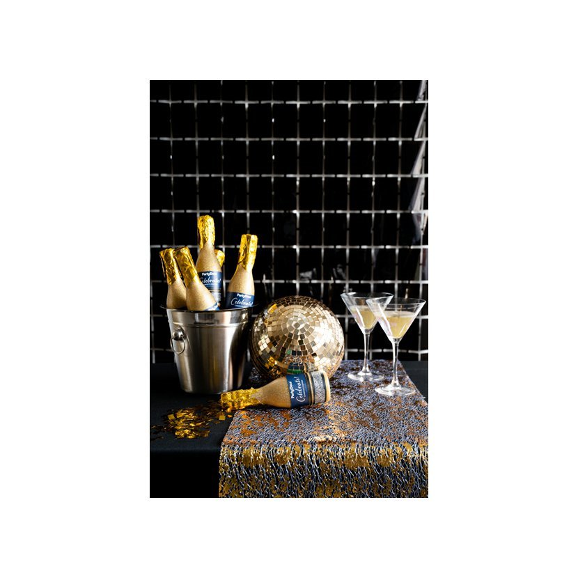 Párty závěs s motivem čtverečků z černé fólie. Šířka cca 100 cm, délka cca 200 cm.