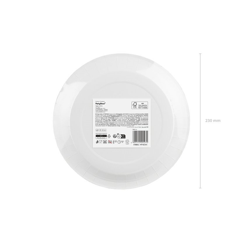 Talířek má průmer 23 cm. Balení obsahuje 6 kusů papírových talířků.