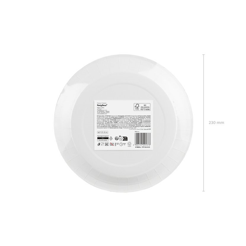Talířek má průmer 23 cm. Balení obsahuje 6 kusů papírových talířků.